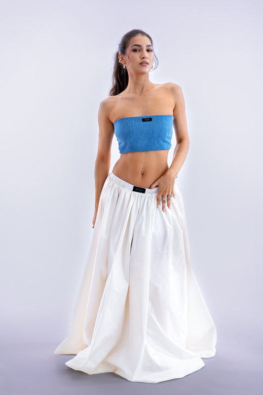 Fehér hernyóselyem taft crop top
