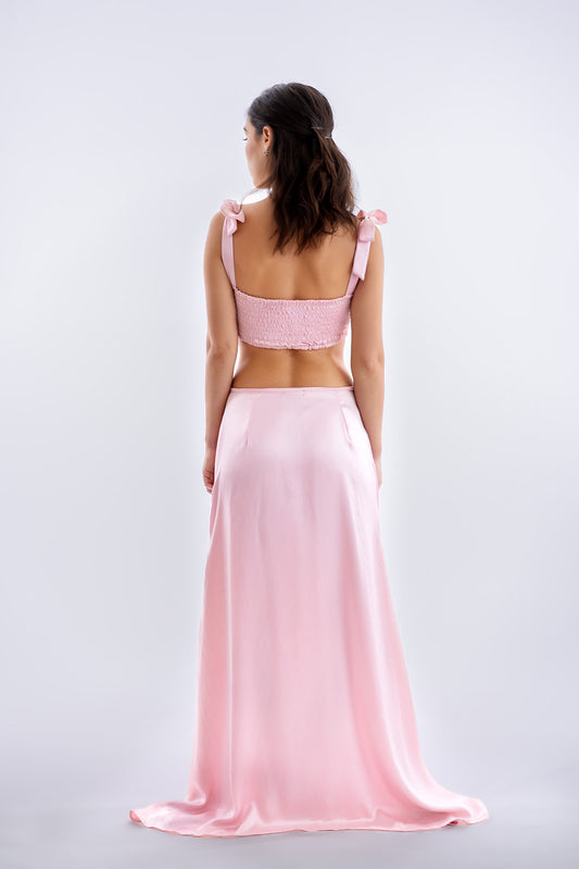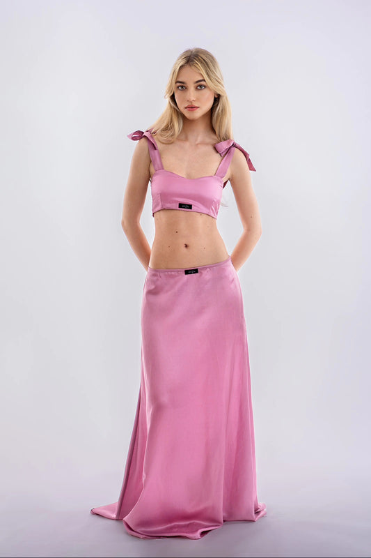 Rózsaszín hernyóselyem szoknya