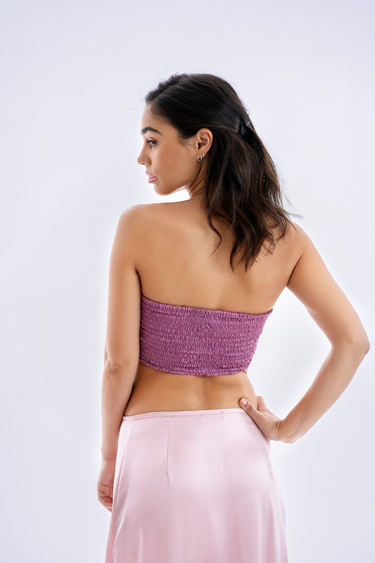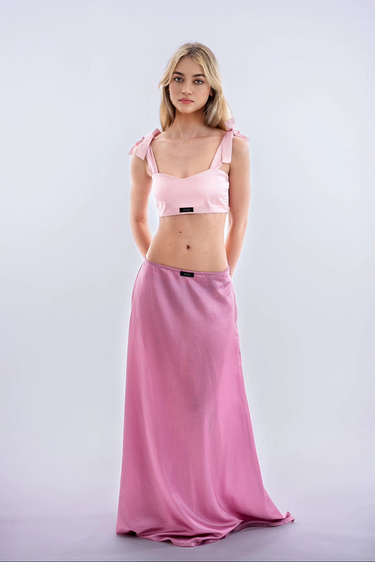Rózsaszín hernyóselyem crop top