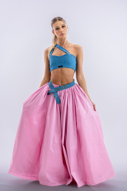 Rózsaszín hernyóselyem taft szoknya